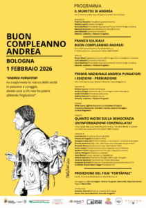Buon Compleanno Andrea – 1 febbraio 2026. A Bologna cerimonia con i vincitori del Premio Nazionale Andrea Purgatori, eventi e convegno sull’informazione