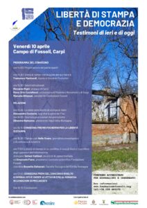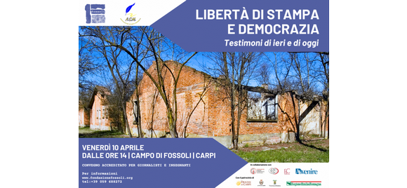 Seconda edizione del convegno Libertà di stampa e democrazia. Testimoni di ieri e di oggi, che si terrà venerdì 10 aprile 2026 (ore 14-18.30) presso la baracca restaurata del Campo di Fossoli (via Remesina Esterna, 32 – Carpi). L’evento, organizzato da Fondazione Fossoli e Associazione Stampa Modenese, sarà preceduto da una visita al Campo (guidata dal giornalista Francesco Manicardi, nipote di Odoardo Focherini).