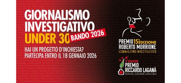 Due premi dedicati al giornalismo d’inchiesta, promossi dall’associazione Amici di Roberto Morrione in collaborazione con la Rai. Sono il collaudato e atteso Premio Roberto Morrione per il giornalismo investigativo (giunto alla 15esima edizione) e il Premio Riccardo Laganà Biodiversity, Sustainability, Animal Welfare (nato tre anni fa nell’ambito del PRM). Entrambi i concorsi sono riservati ai giovani under 30. È possibile partecipare con un progetto inedito, che deve essere inviato entro mezzanotte di domenica 18 gennaio 2026 (rispettando le modalità indicate su www.premiorobertomorrione.it/bando).