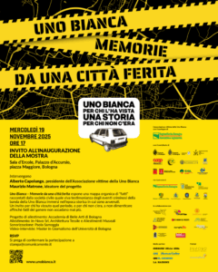 “Mantenere viva, rinnovare, approfondire e divulgare la memoria degli avvenimenti e delle vittime, delle persone e dei luoghi, dei processi storici e culturali per testimoniare alle nuove generazioni un senso civico e di cittadinanza attiva”. È questo l’obiettivo di UNO BIANCA, “Progetto di Storia Pubblica Partecipata” promosso da Associazione Vittime della Uno Bianca con il sostegno di Assemblea legislativa della Regione Emilia-Romagna e numerose collaborazioni, in programma a Bologna (presso diversi spazi cittadini) da novembre 2025 a gennaio 2026.